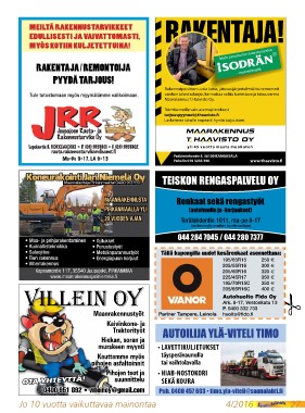 0400 951 892 • villeinoy@gmail.com Puh. 0400 457 603 • timo.yla-viteli@saunalahti.fi